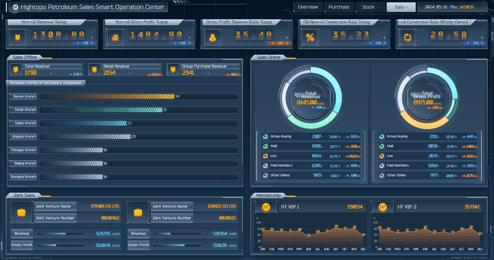 智慧油品营销调度中心系统通过可视化大屏来实时监控与分析各项数据,管理者能够更加高效地进行资源配置和决策制定。图扑可视化不仅优化了运营流程,还增强了市场反应能力,为企业的持续发展提供了强有力的技术支持。