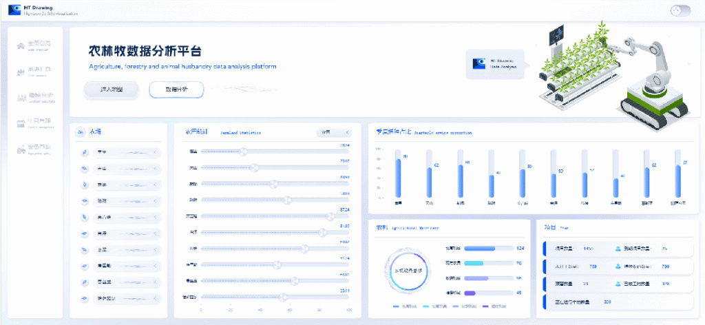 图扑 HT 产品采用统一数据模型,可驱动 2D、3D、Chart 和 UI 全套图形库,降低学习指数曲线。支持大屏可视化设计,支持 UI 和图表元素进行界面自适应,支持 UI 和图表融入各种不同场景。可将 2D 和 3D 场景在编辑器上互相嵌套叠加、旋转和缩放,高度组件化无缝融合,承载十万以上级别的 2D、3D 及 UI 的表格树通用组件图元量,满足海量物联网设备和数据场景需求。