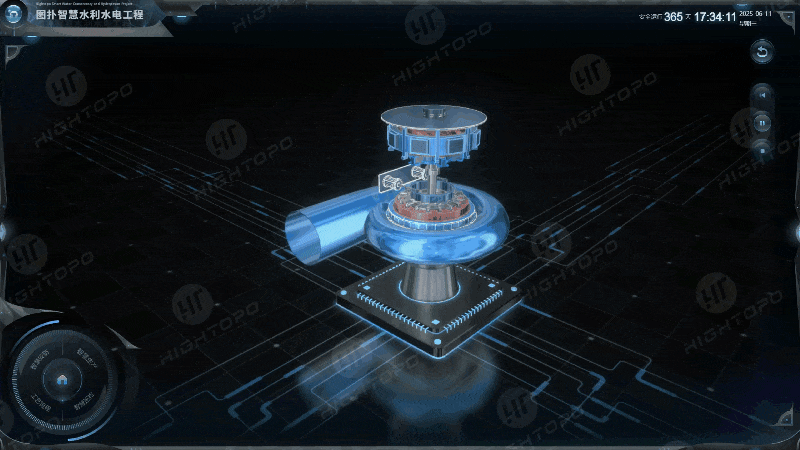 传统通过平面图、塑料静态模型或实地参观水电站的方式,难以直观、系统地呈现水轮机的内外部结构及工作原理。图扑构建的 1:1 水轮机三维数字孪生系统,清晰展示蜗壳、导水机构、转轮等核心部件结构。