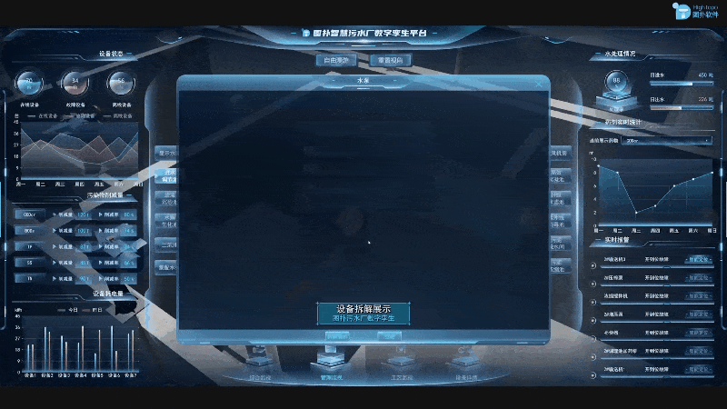 平台提供水泵变频参数远程调控、格栅机运行周期智能优化等操作,结合三维拆解的可视化引导,运维人员可在线完成设备虚拟检修仿真,并通过长期数据积累形成设备 “数字档案库”。形成从初期选型阶段的能效模拟分析,到退役前的剩余寿命预测评估,实现设备资源的全周期优化配置。
