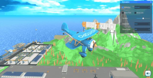 const params = { duration: 60000, easing: function (t) { return t; }, action: function (v, t) { const lineLength = g3d.getLineLength(polyline); const offset = g3d.getLineOffset(polyline, lineLength * v), point = offset.point, px = point.x, py = point.y, pz = point.z, tangent = offset.tangent, tx = tangent.x, ty = tangent.y, tz = tangent.z; plane.p3(px, py, pz); plane.lookAt([px + tx, py + ty, pz + tz], 'front'); }, finishFunc: function () {} }; animation = ht.Default.startAnim(params);