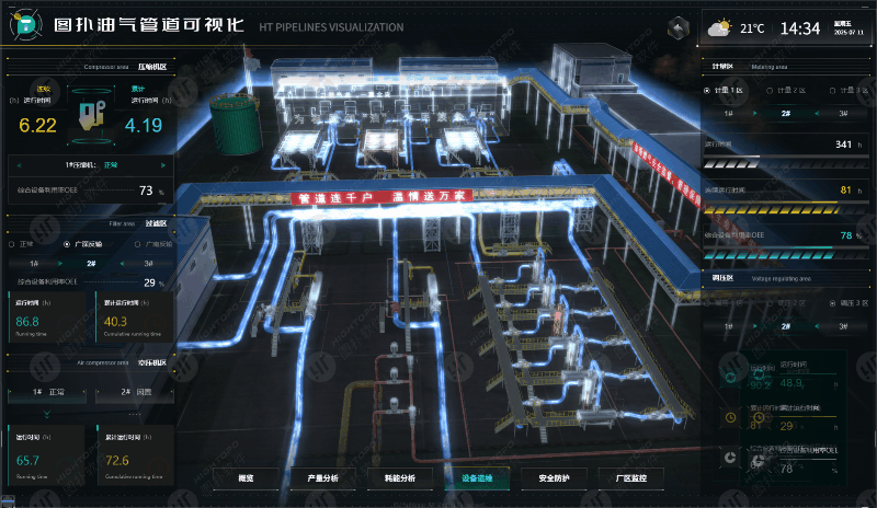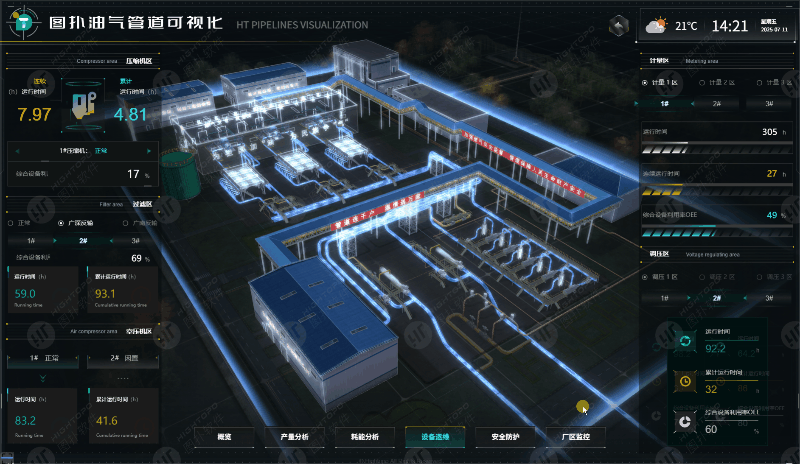 在 HT 中,ht.Polyline 是一个强大的工具,可以用来在 3D 场景中表示管道。它不仅支持贴图,还能通过调整贴图的 UV 偏移等属性,生动地展示数据流的方向。ht.Polyline 不仅限于简单的管道表现,还可以使用它实现如流动、漫游等的功能。