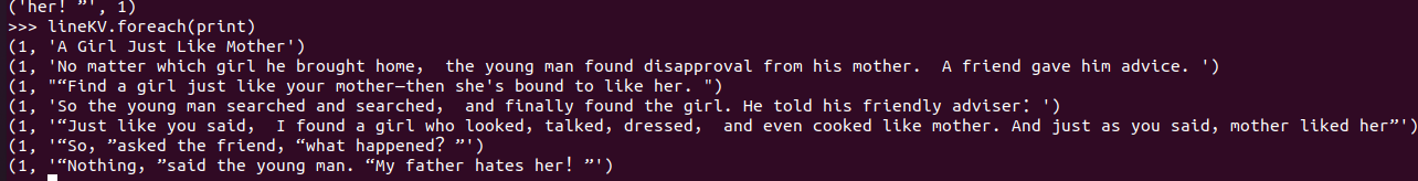3.在PySparkShell尝试以下代码,观察执行结果,理解sc,RDD,DAG。请画出相应的RDD转换关系图。