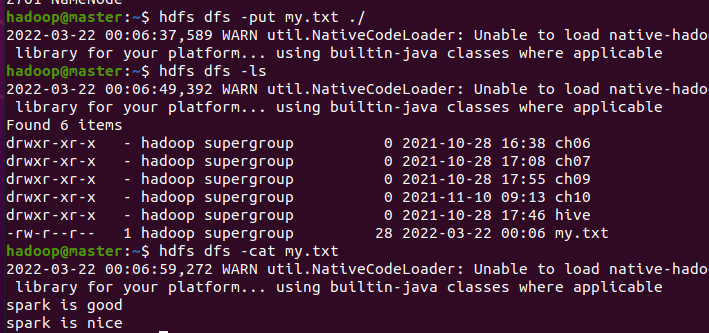 2.从HDFS加载数据创建RDD、启动hdfs、上传文件、查看文件、加载