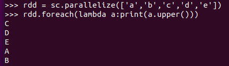 2.foreach(lambda a:print(a.upper())
