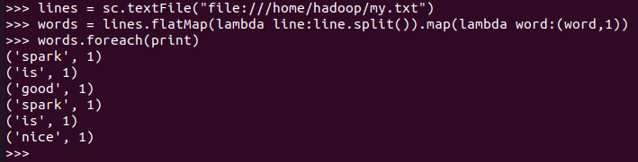 1.从本地文件系统中加载数据创建RDD