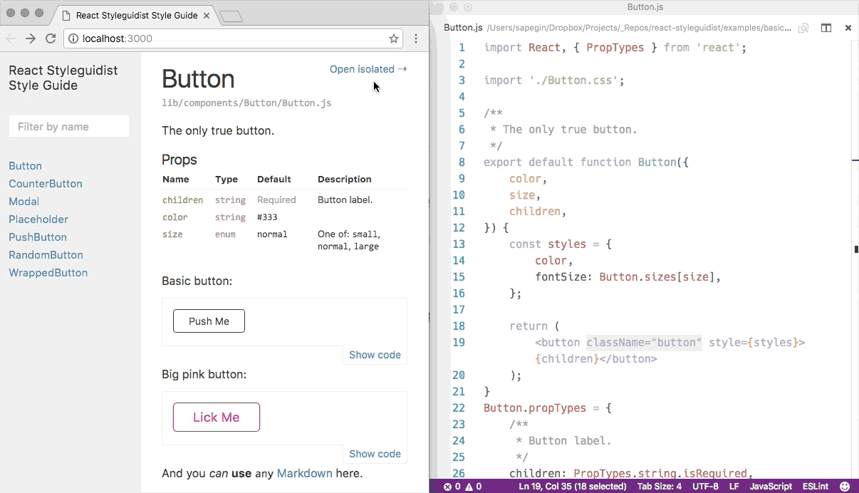 顾名思义,这是一款 React 样式指南生成器,可与你的团队分享在线样式指南。它列出组件支持类型,并展示基于 Markdown 文件的实时、可编辑的使用示例。