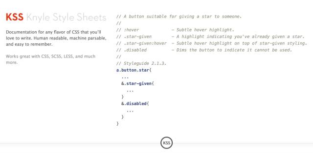 KSS 既是一份文档规格说明,也是一种编写样式指南的格式,旨在帮助开发者自动化地创建可读、可解析的样式指南。它为团队编写具有可维护性、可文档化的 CSS 提供一套方法。