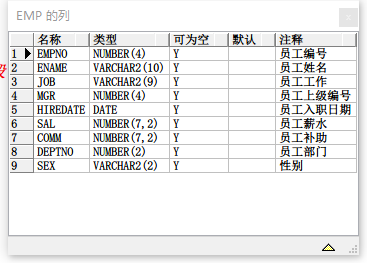 comment on column emp.ename is '员工姓名';