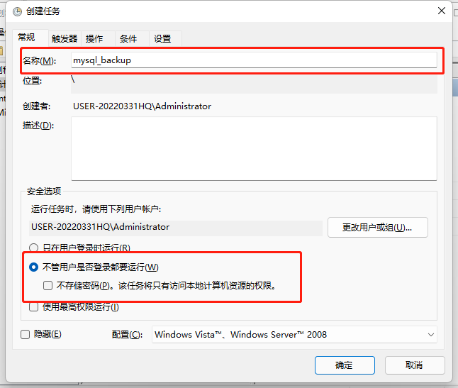 I:\mysql-5.7.25-winx64\bin\mysqldump --opt -u root --password=密码 [-h服务器地址] 数据库名称 >H:\db_back\mydb_%Ymd%.sql