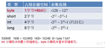 (a) 整数型:byte(1字节)、short(2字节)、int(4字节)、long(8字节);其中,long在赋值时,数值后加上l或者L 一般用int;