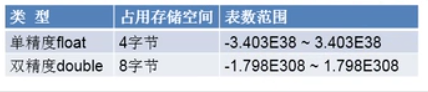 (b) 浮点型:float(4字节) 7位有效数字,赋值时,数值后加上f或者F、double(8字节)精度是float的2倍; 一般用double;