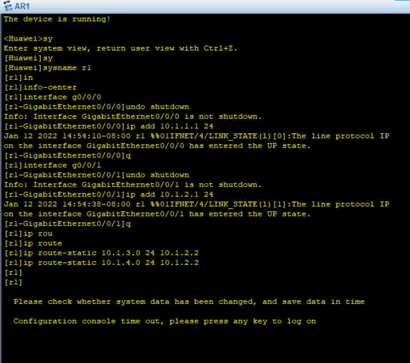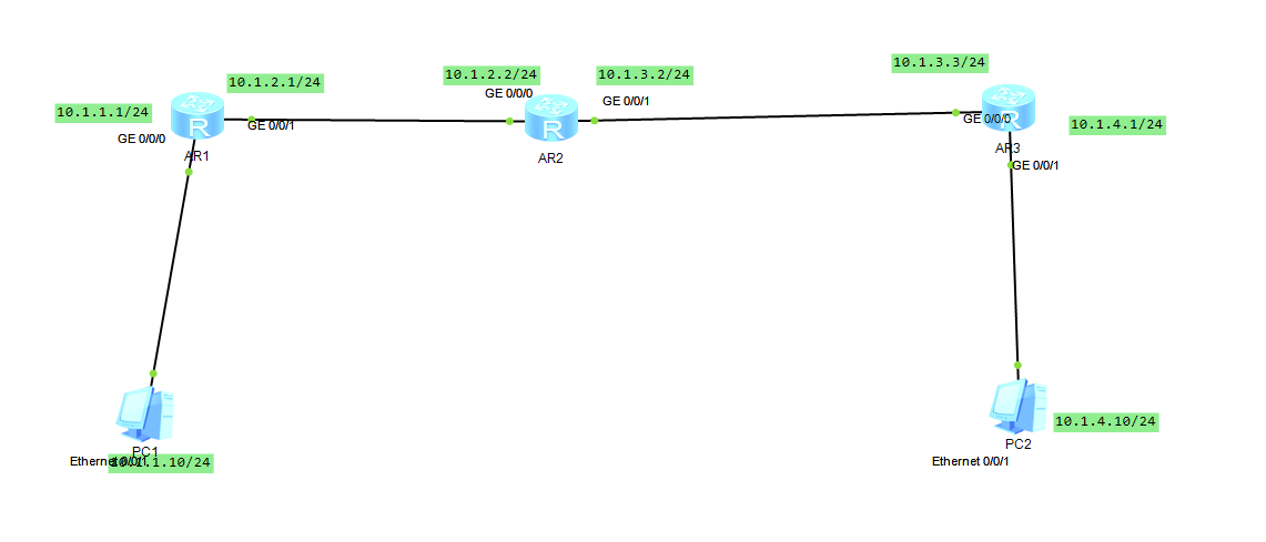 AR1配置:非直连网段可能不止一个,但下一跳是一样的