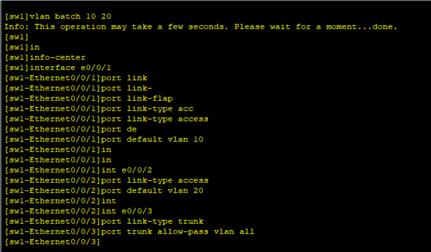 交换机配置:需要注意接口类型,access接口只允许通过一个vlan,trunk接口允许通过多个vlan。