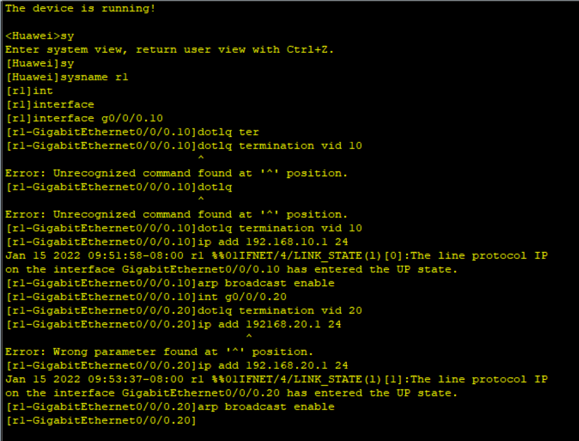 需要注意的是配置完IP地址后要将此接口的arp广播打开,即arp broadcast enable。