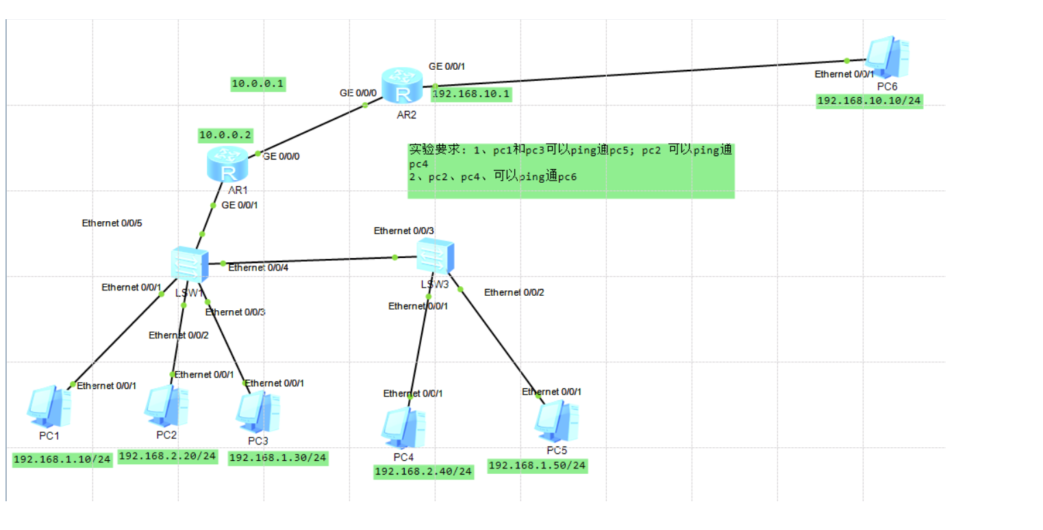 PC1,PC3,PC5配置vlan10,达到互通的目的