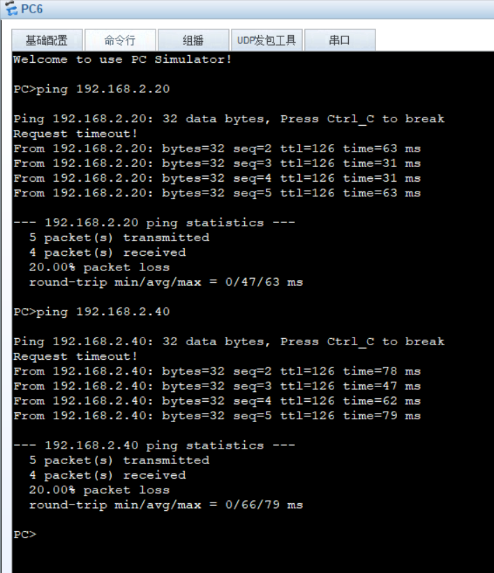 PC2,PC4配置vlan20,达到互通目的