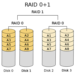 RAID0,RAID1,RAID5,RAID6,RAID1+0等