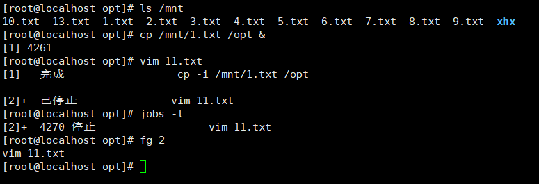1.ctrl+z:挂起当前进程,即调入后台并停止执行