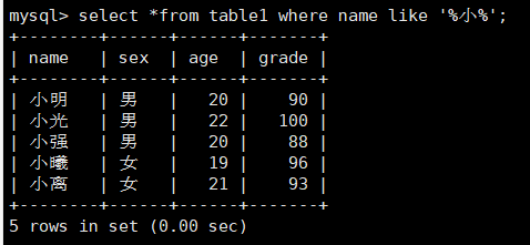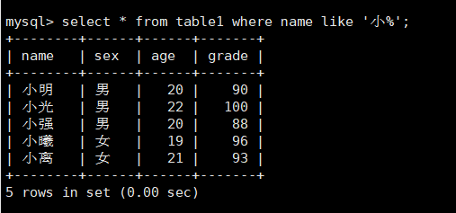 | % | 百分号表示零个、一个或多个字符(相当于linux中的“*”号) |