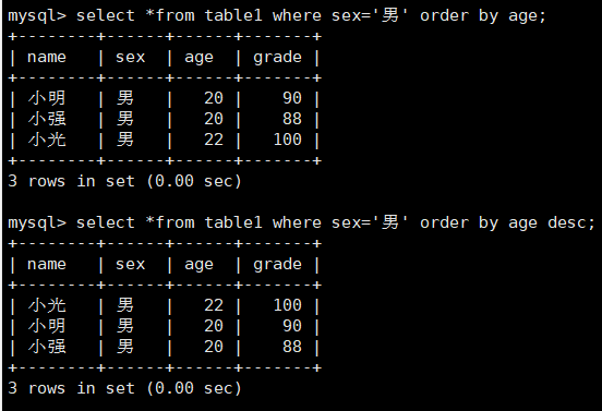 语法:SELECT "字段" FROM "表名" [WHERE "条件"] ORDER BY "字段" [ASC, DESC];