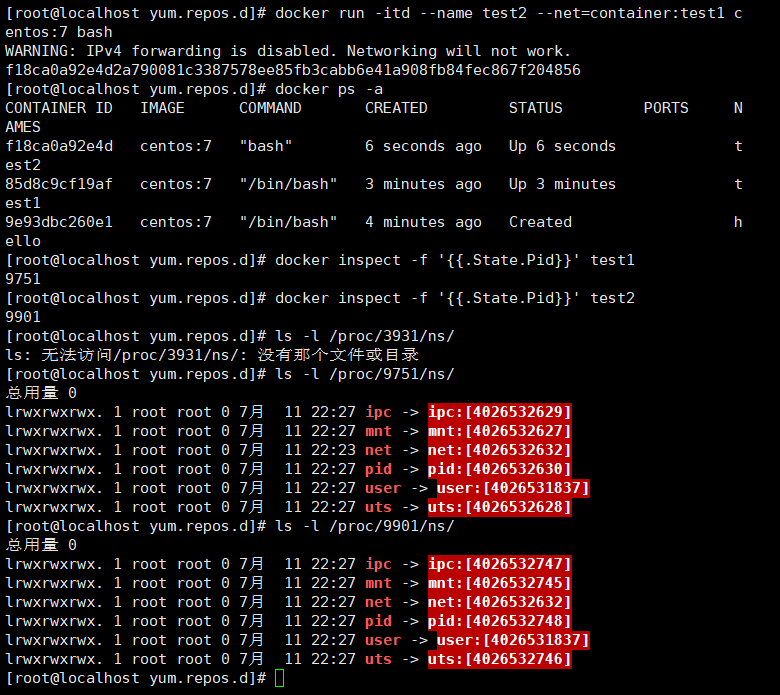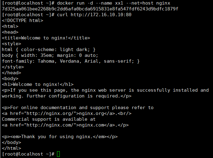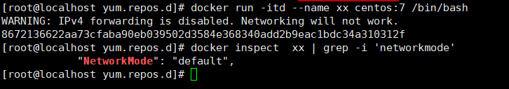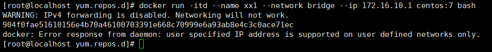 docker run -itd --name hh --net mynetwork --ip 172.18.10.10 centos:7 /bin/bash