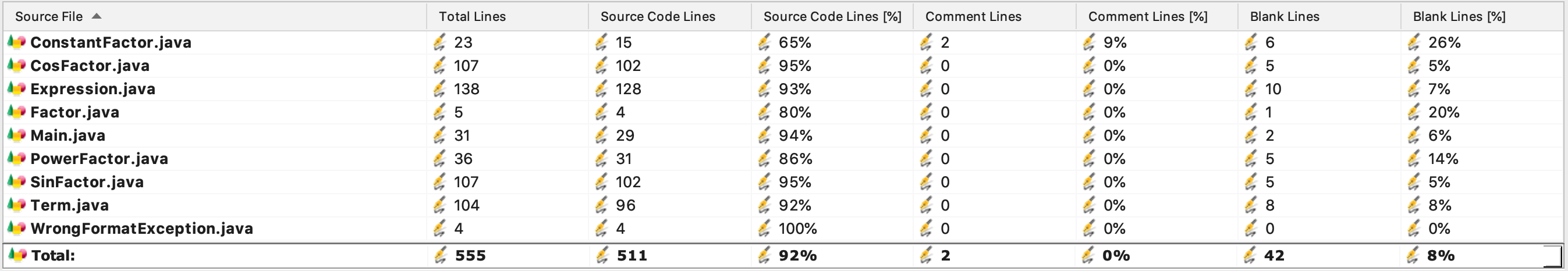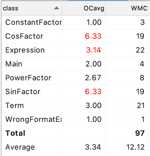 - 可以看出复杂度主要体现在SinFactor和CosFactor上,这是因为Term在把sin()或Cos()交给Sin/CosFactor的时候,完全不知道括号内部的情况,而Sin/CosFactor对于括号内部要求必须是因子,所以需要做一些判断。我认为我设计的判断算法还有优化的余地。此外,Sin/CosFactor内部的操作几乎是相同的,所以我认为可以增加一个三角函数类,来实现Sin/CosFactor的生成。这样做实际上是通过运用工厂模式来减少了冗余的代码。