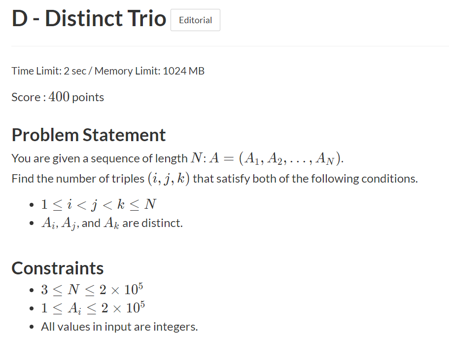找出三元组i,j,k(i<j<k,ai,aj,ak互不相等)
