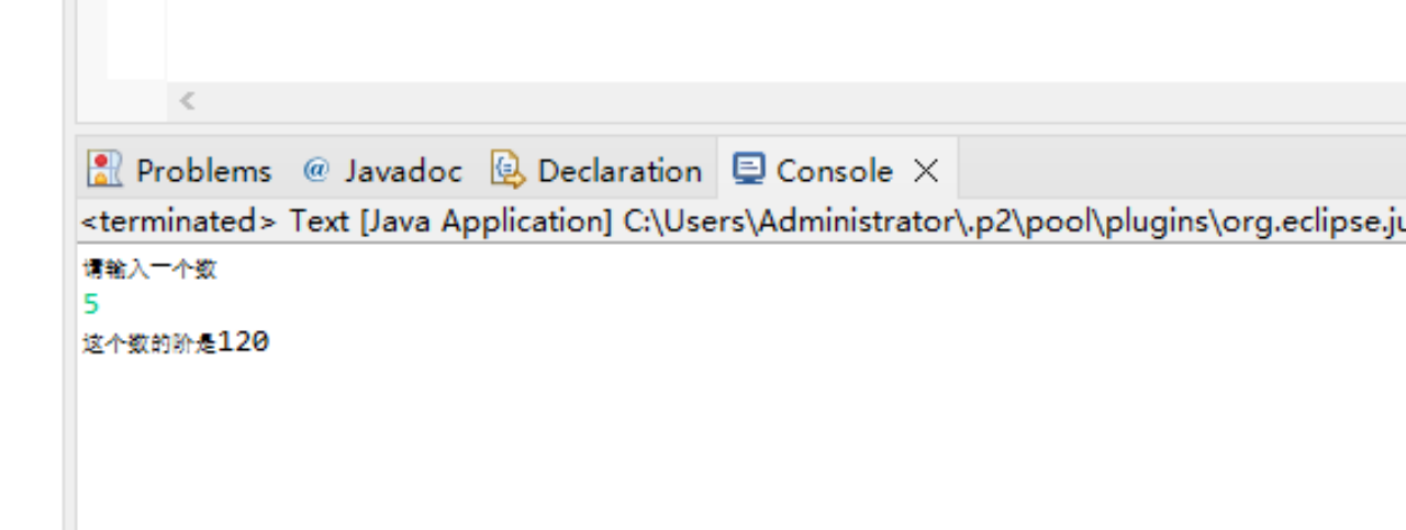 package xhy; import java.util.Scanner; public class Text { public static void main(String[] args) { // TODO Auto-generated method stub Scanner input = new Scanner(System.in); System.out.println("请输入一个数"); int x =input.nextInt(); int sum= 1; int i; for(i=1;i<=x;i++) { sum*=i; } System.out.println("这个数的阶是"+sum); } }