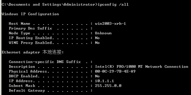 ipconfig /all #查看ip所有信息