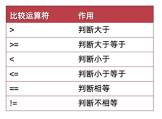 作用: 用来判断比较两个数据大小, 返回一个布尔值(true/false)
