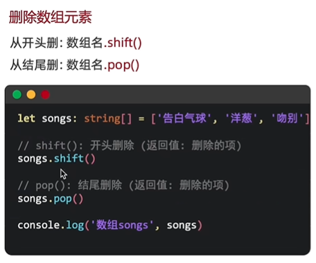 shuzu.pop() //结尾删除一个元素
