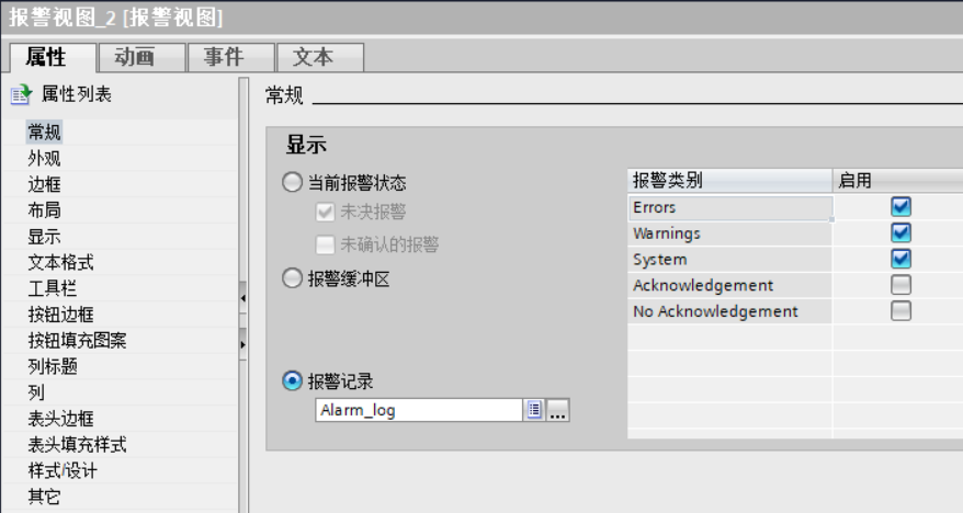 .报警类别需要定义,不同的报警类别在HMI的报警控件中有不一样的处理显示规则