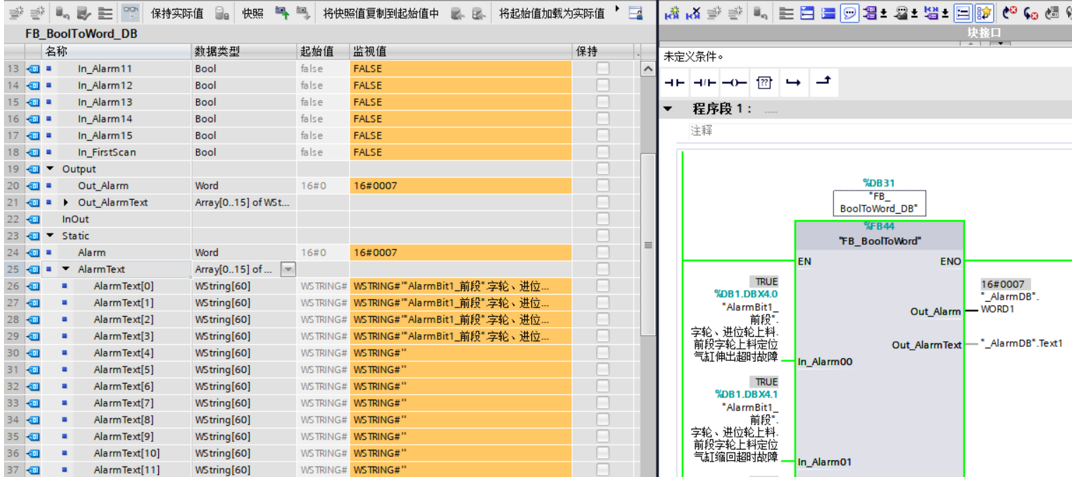 - 自己做一个Bool2Word的块,目的是收集在程序里做的报警
