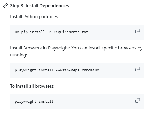 playwright install; - 等待安装结束。