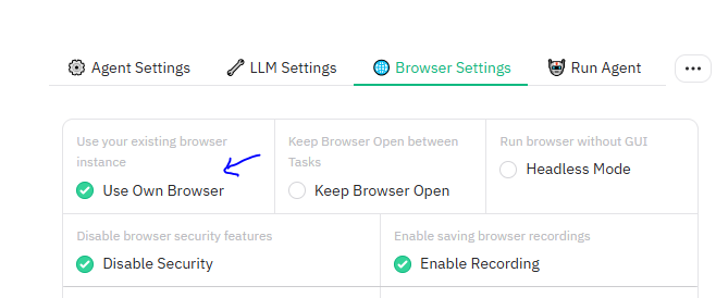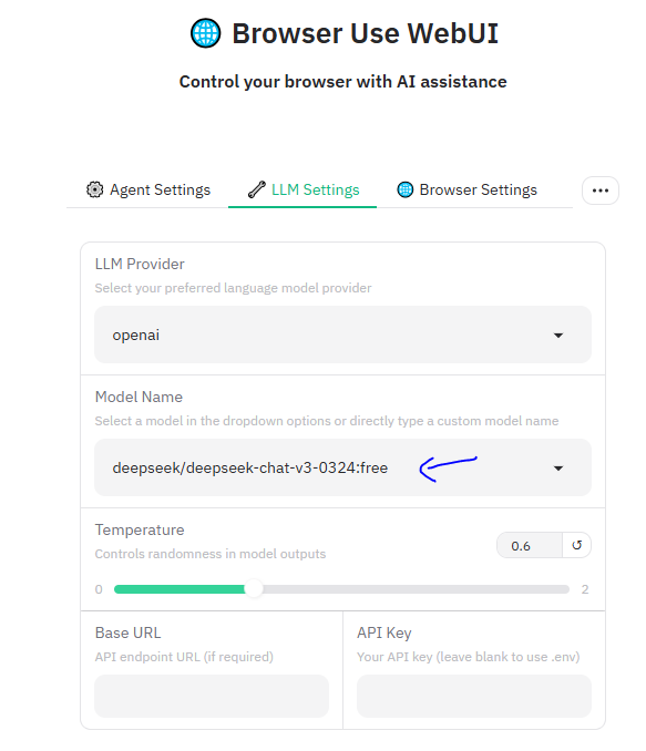 deepseek/deepseek-chat-v3-0324:free; - 在browser setting中,选择Use Own Browser,使用本机chrome: