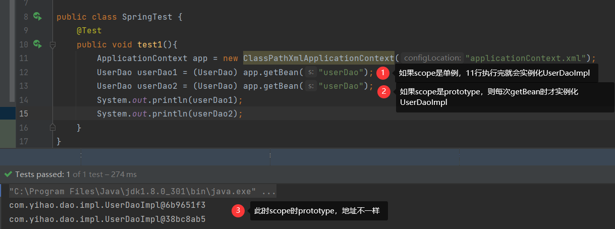 <bean id="userDao" class="com.yihao.dao.impl.UserDaoImpl" scope="prototype" init-method="init" destroy-method="destroy"></bean>