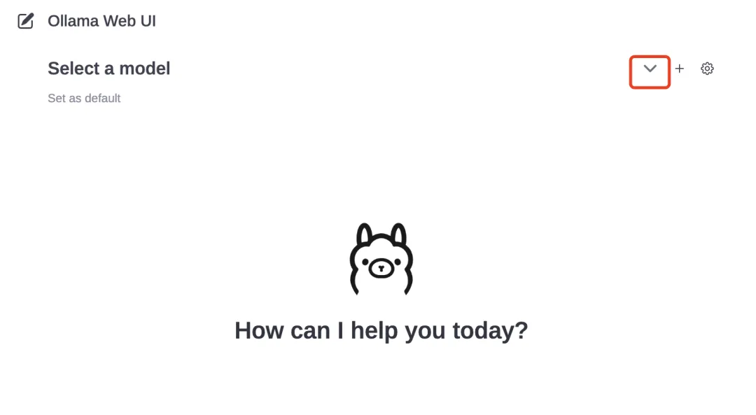 打开浏览器访问http://localhost:3000,可以看到如下图所示界面。默认情况下是没有选择模型的,需要点击截图所示箭头处选择模型。