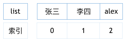 name = ["张三","李四","夏亮"] - 列表按照从左到右的顺序定义列表元素,下标从0开始顺序访问,可以修改指定下索引位置对应的值,如下: