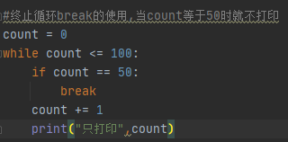 - 完全终止循环,用于完全结束一个循环,跳出循环体执行循环后面的语句