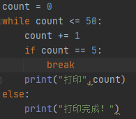 - while 后面的else 作用是指,当while 循环正常执行完,中间没有被break 中止的话,就会执行else后面的语句