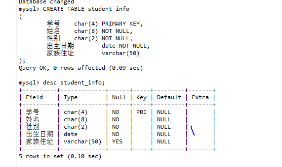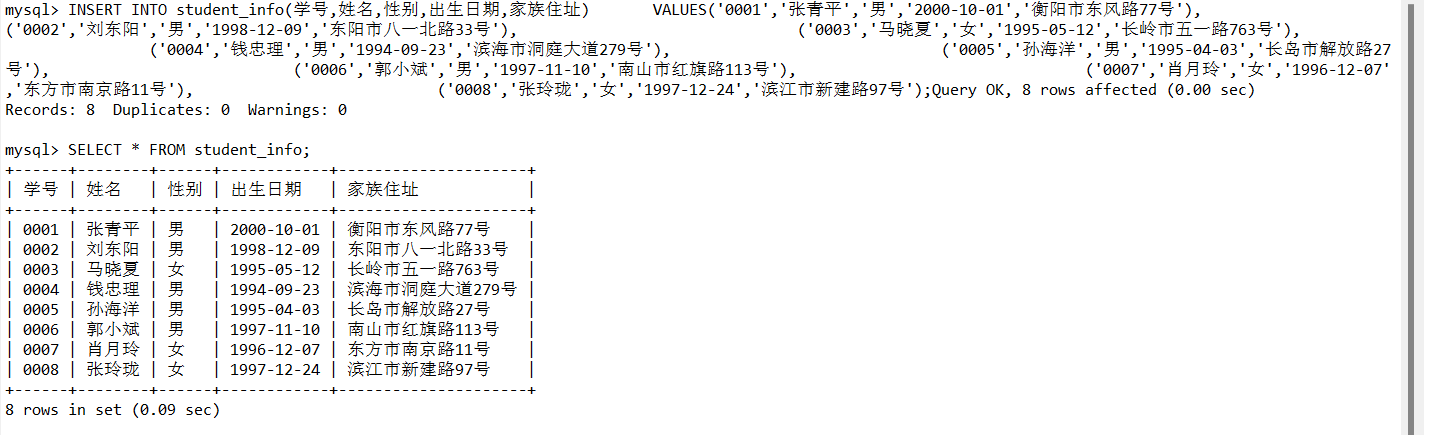 INSERT INTO student_info(学号,姓名,性别,出生日期,家族住址)