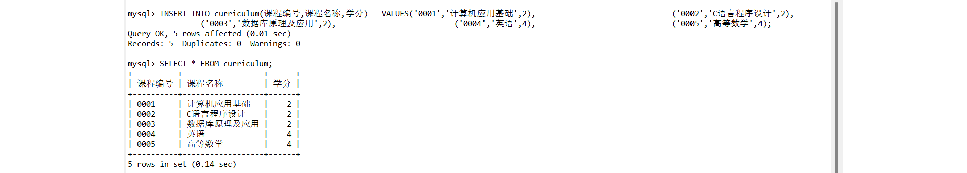 INSERT INTO curriculum(课程编号,课程名称,学分)