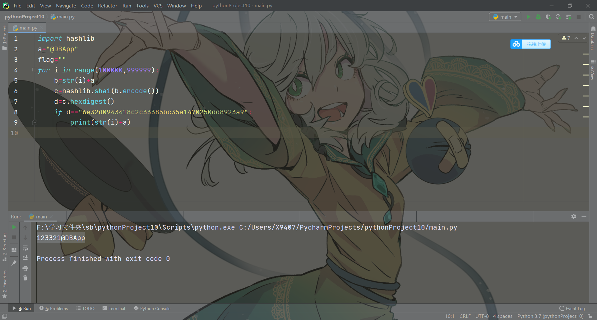 在上方的网址里,我勉强明白了如何用python实现sha1解密,于是编写了如下代码