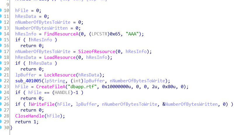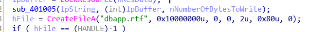 因为下一个createfileA是找到文件并打开,推测出上面的函数作用是生成一个rtf文件