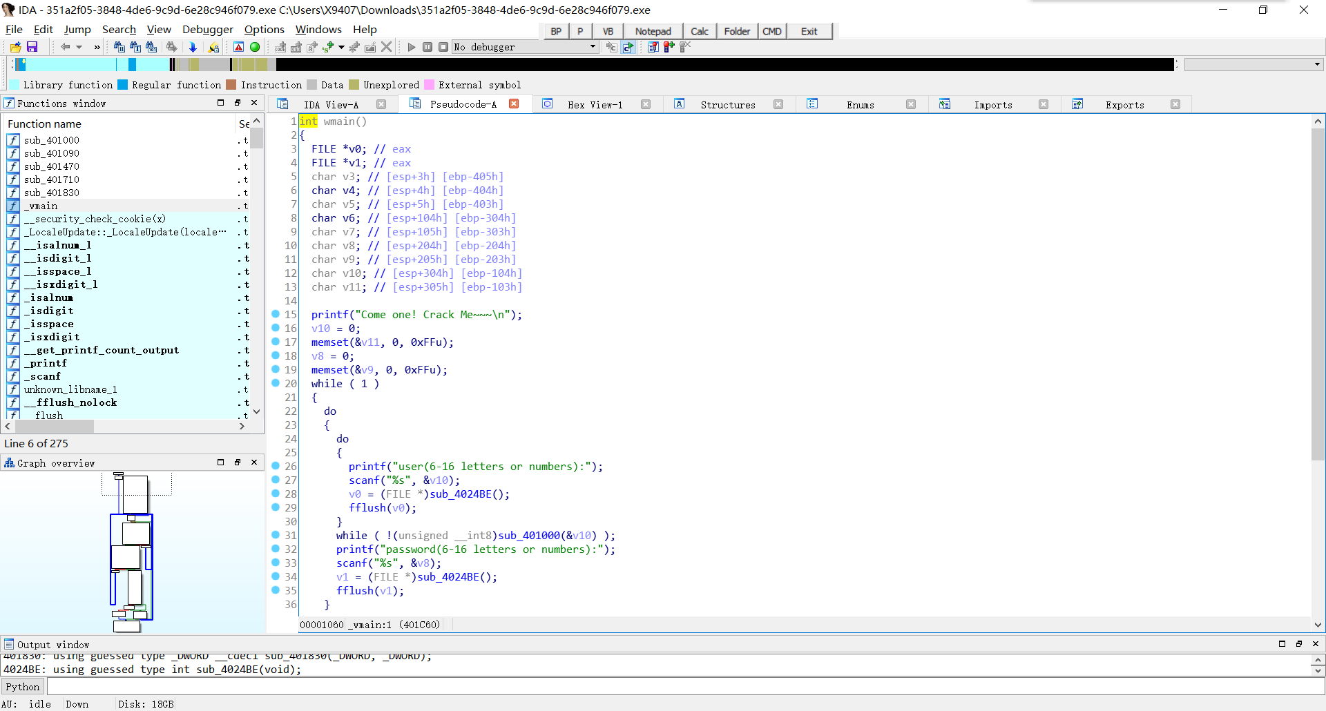 然后回到程序,随便输入个密码(反正等下会断在那儿