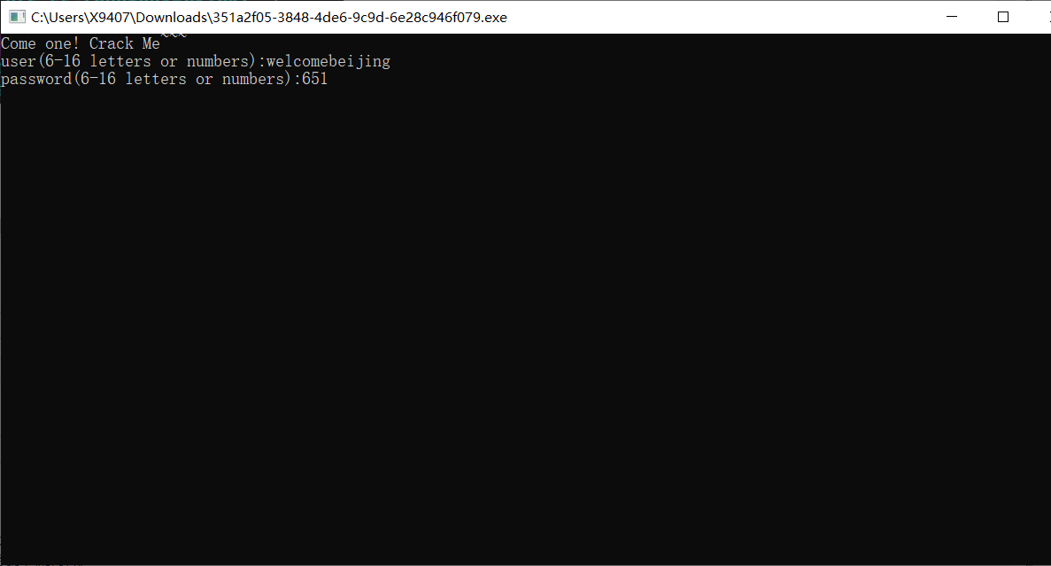 因为我们已经得到v17,同时用户名也知道是welcomebeijing,而最开始说点开程序的时候要输入用户名。于是我们可以通过用ollydbg动态调试的方法得出byte_416050的值
