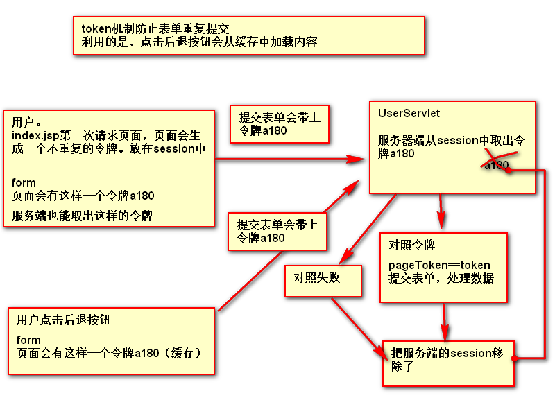 每次提交表单,带上令牌。服务器验证口令,口令合法处理请求,口令不合法,打回。