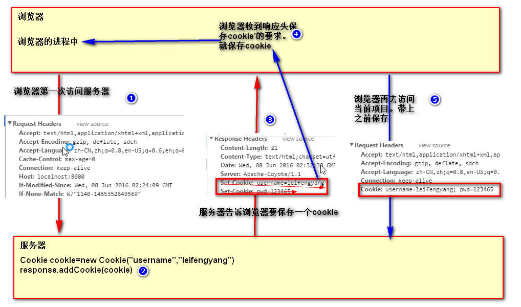 1、cookie创建发送给浏览器;响应头多了:Set-Cookie:username=leifengyang。
