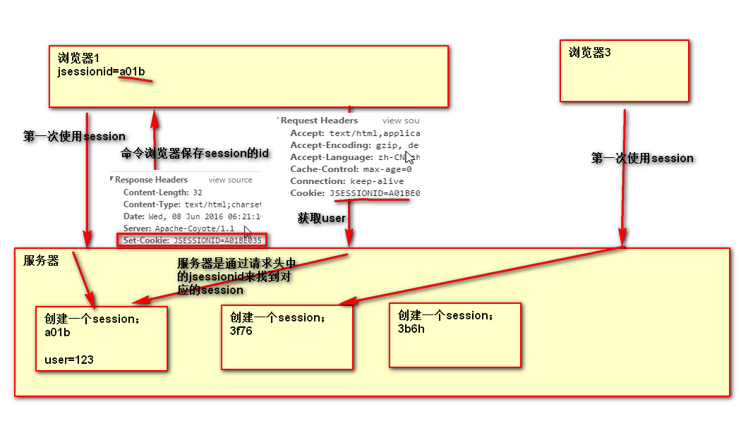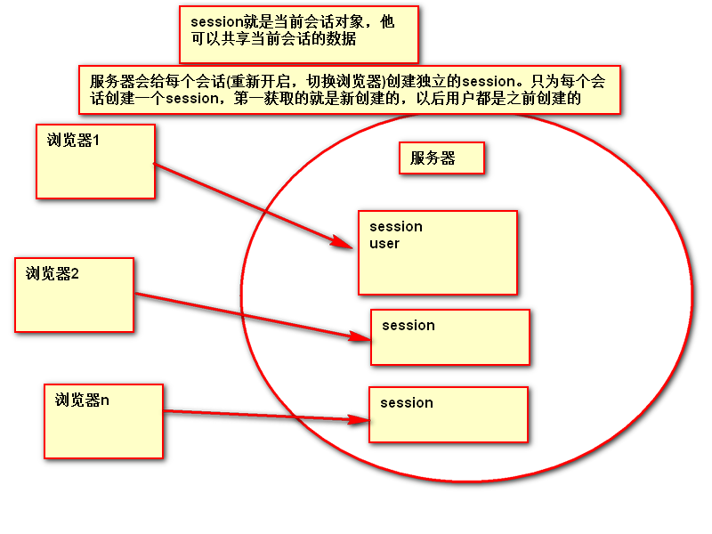 服务器端保存数据的技术;域对象(在整个会话期间保存的数据在任意资源都可以取到)